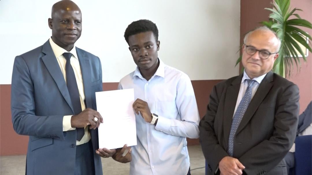 Cette cérémonie s’est effectuée en présence du Ministre de l’Enseignement Supérieur et de la Recherche Scientifique, le Prof . Adama Diawara et de Son Excellence Monsieur l’Ambassadeur de France Jean-Christophe Beillard.
