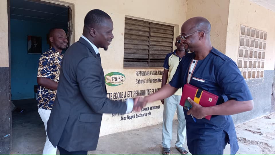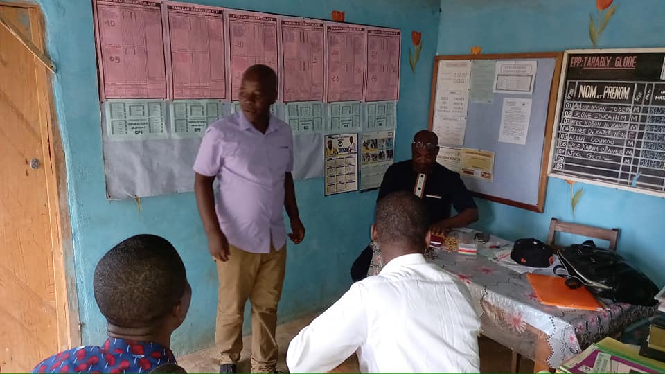 Ce lundi 13 septembre 2021, 1er jour de classe sur toute l’étendue du territoire national, il était impératif pour M. L’Iepp Silué Brahima, chef de la circonscription de Guézon de constater de l’effectivité de la reprise dans sa circonscription. Après le salut aux couleurs de notre bannière tricolore, M. L’Inspecteur a sillonné les écoles de sa circonscription pour faire un contrôle de présence pour une rentrée scolaire réussie et effective.